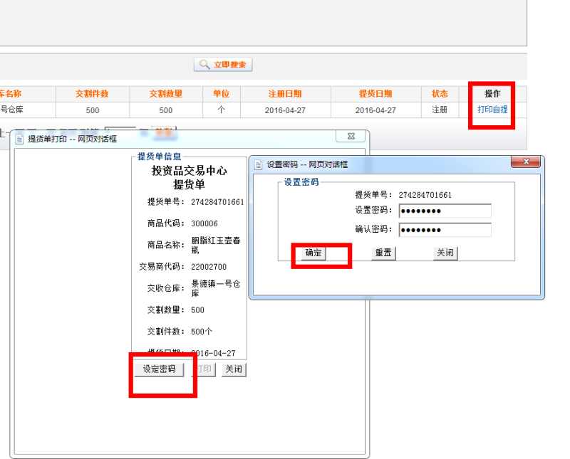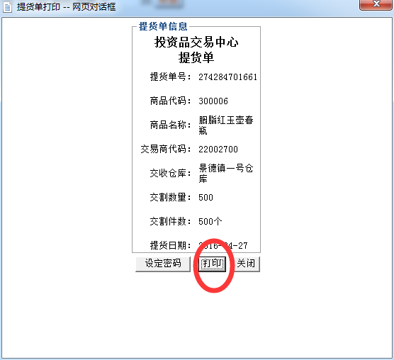 1.2、打印提貨單設(shè)定提貨密碼