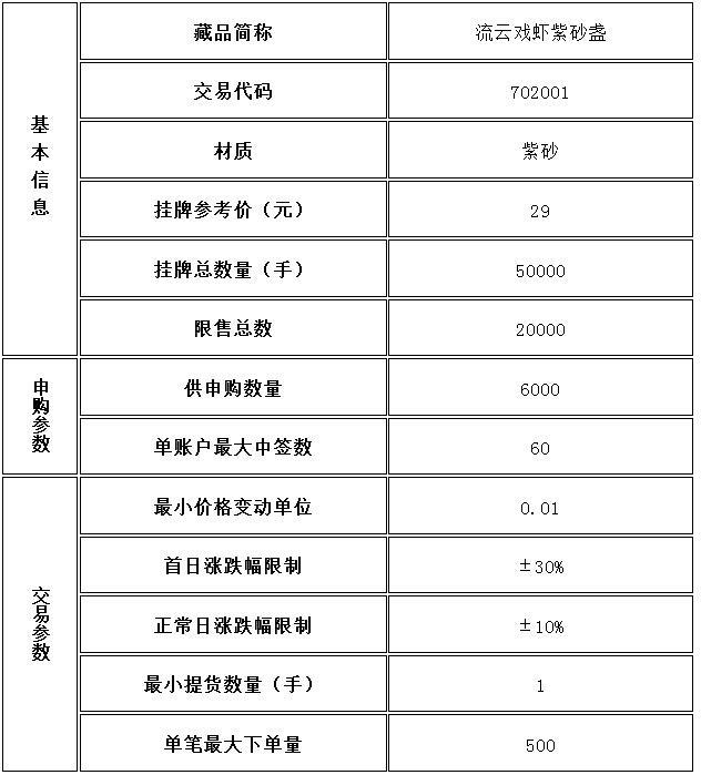 4、中簽公布日,本交易所將公布申購當日參與某一藏品申購的所有交易會員的申購數(shù)量,以及參與某一品種申購的總資金量;